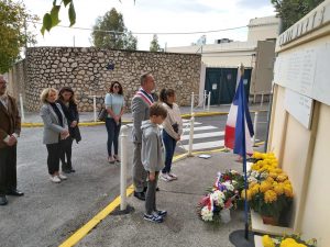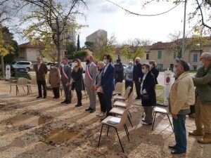 Yoann Tavernini Président, Jean-Pierre Delahaye Vice-président, Laura Banville, Mireille Vibert, Jean-Louis Don, Joseph Rakotobé, membres Conseil d’Administration au nom du Comité d’Intérêt Local des quartiers de Claret – Les Lices – Montéty – Sainte Anne – Val Fleuri ont commémoré le 103ème anniversaire de l’Armistice avec des adhérents au Comité d’Intérêt Local, des enfants et des habitants en présence de Monsieur Christophe Moréno, Adjoint au Maire et Conseiller départemental, Madame Corine Jouve, Conseiller départemental remplacante et Conseillère Municipale, Monsieur Patrice Cazaux, Adjoint au Maire, et Madame Audrey Pasquali-Cerny, Conseillère Municipale.