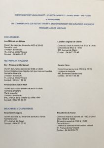 Pendant la crise sanitaire des commerçants de nos quartiers qui restent ouverts et/ou proposent des livraisons à domicile.