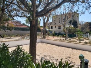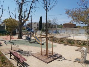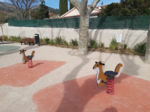 Cette belle rénovation est arborée avec la plantation de 5 arbres supplémentaires (Eucalyptus, Brachychitons à feuilles d’érable et Lilas des Indes), qui complètent les 4 grands platanes et micocouliers déjà présents et avec la création de 4 belles jardinières en pierres sèches, pouvant servir de bancs, ont également été créées et près d’une centaine d’arbustes et plantes vivaces ont été plantées. Il a également été ajouté 2 jeux d’enfants en plus venant compléter la structure toboggan déjà existante sur un enrobé amortissant. Une fontaine à boire a été installée. Quant au parc à chiens il a été agrandi et dispose toujours d’un accès indépendant. La façade extérieure du parc a été considérablement améliorée avec des murs de clôture en pierres sèches et la pose de nouvelles grilles plus modernes.