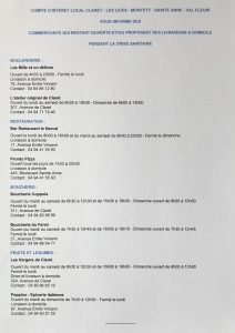 - les commerçants qui restent ouverts et/ou proposent des livraisons à domicile