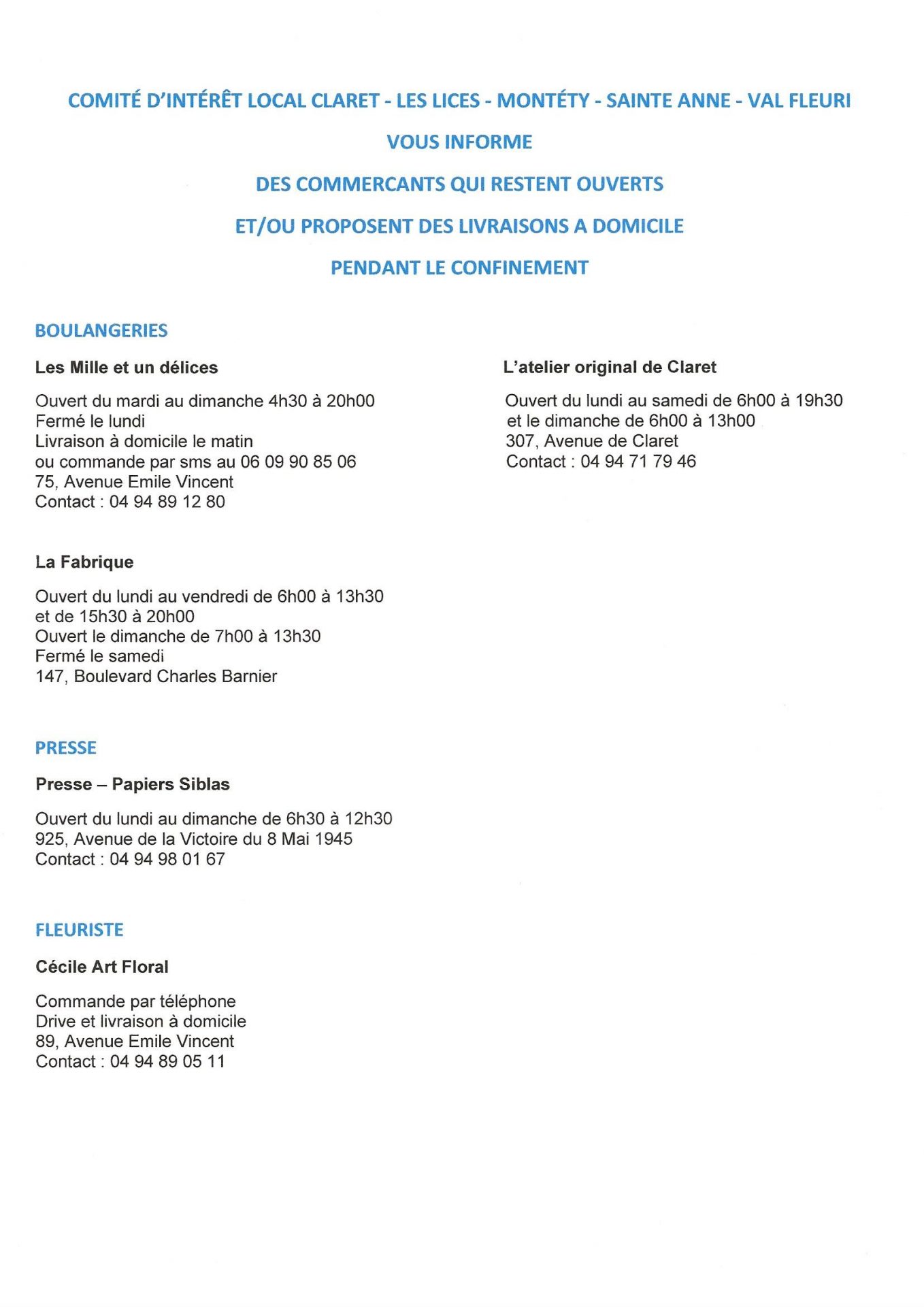 Pendant le confinement, voici la liste des commerçants qui restent ouverts et/ou proposent des livraisons à domicile :